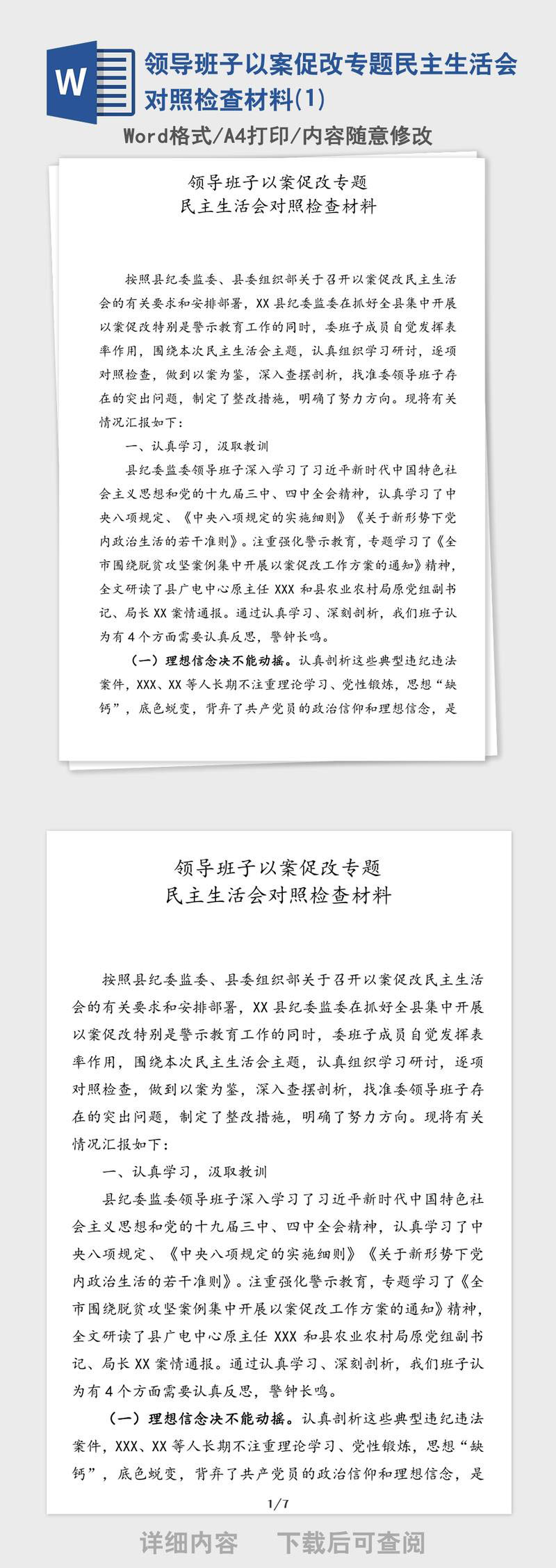 领导班子以案促改专题民主生活会对照检查材料WORD演讲稿