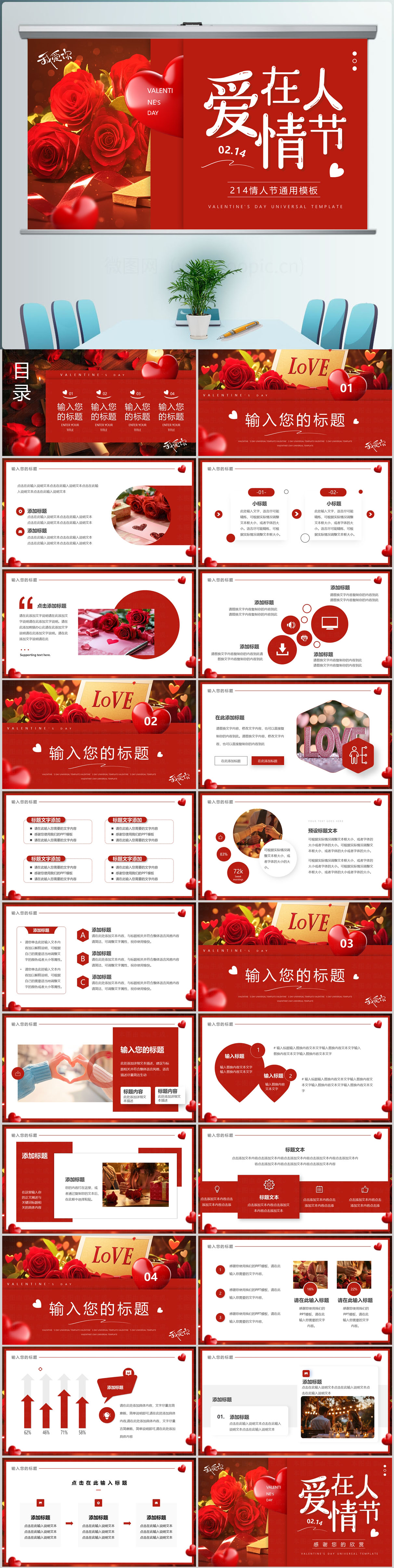 红色浪漫传统七夕情人节活动策划PPT动态模板设