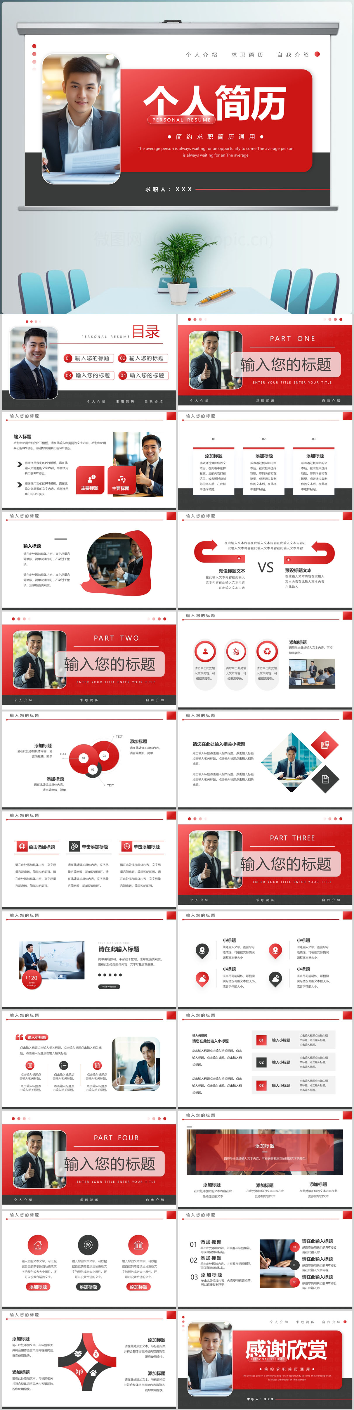 红色简约岗位竞聘工作竞聘求职简历PPT模板设计