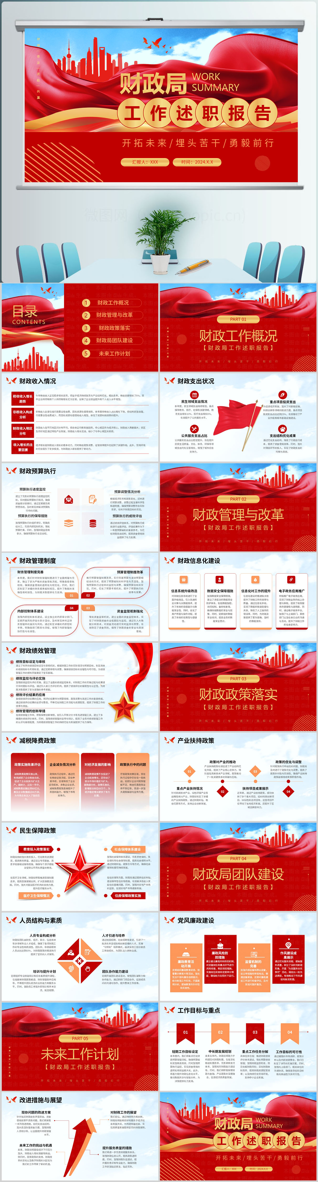红色财政局工作述职报告PPT模版设计