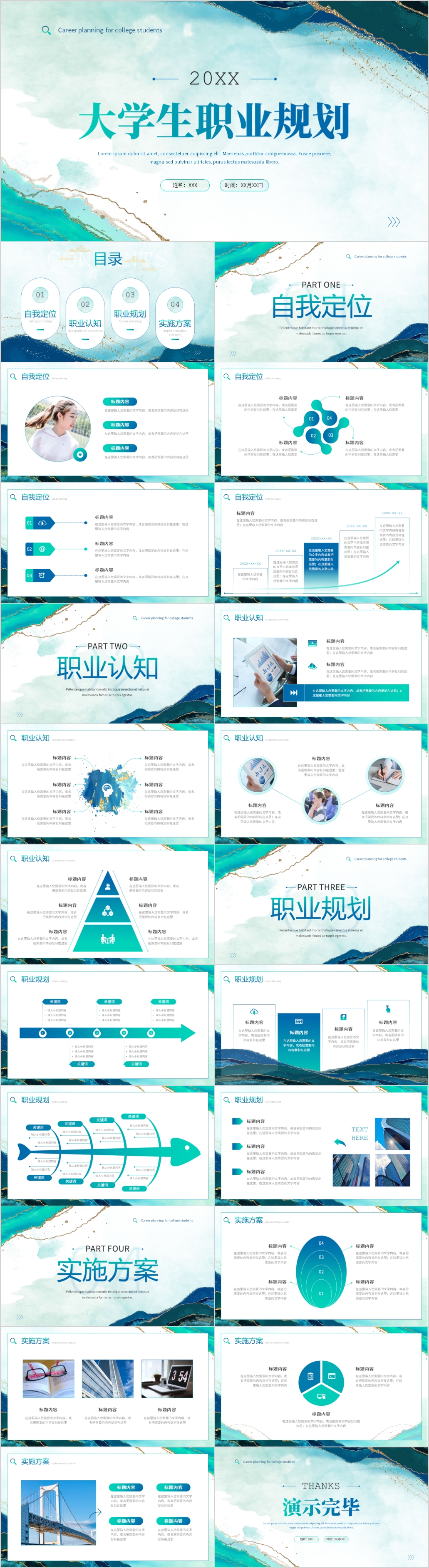 蓝色简约职业生涯规划书大学生就业分析PPT模板