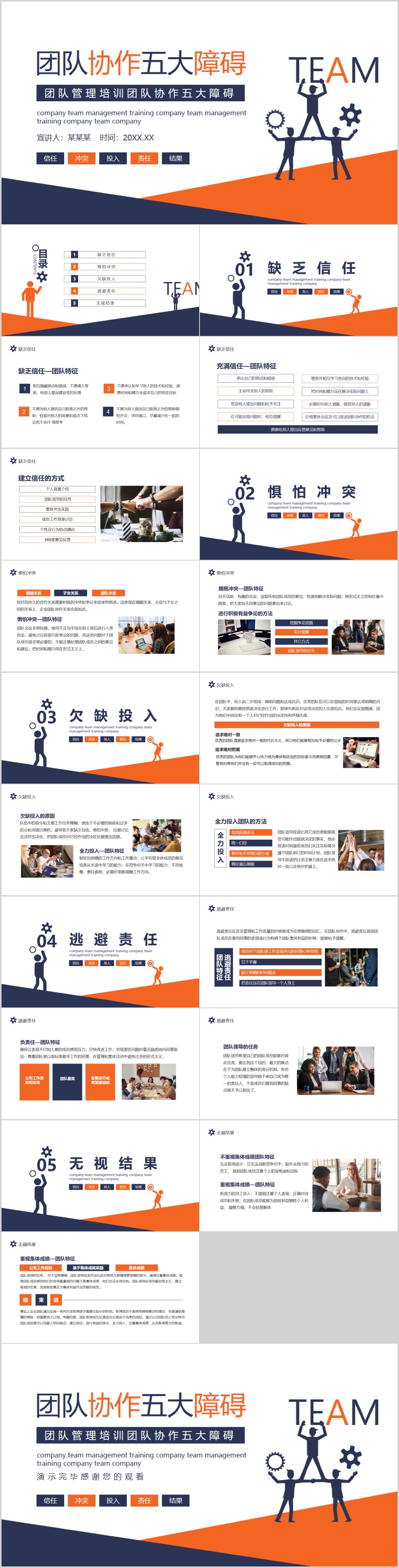 简约商务团队协作的五大障碍相关知识培训PPT模