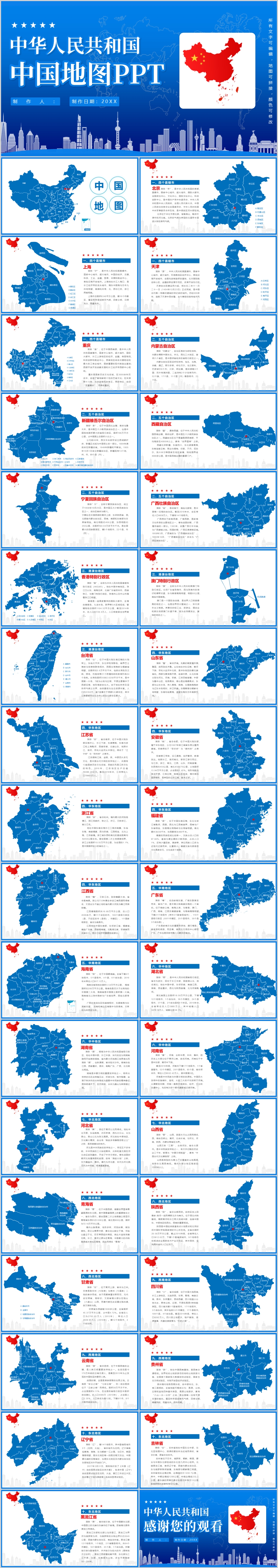 中华人民共和国地图矢量PPT模板(文字可修改,