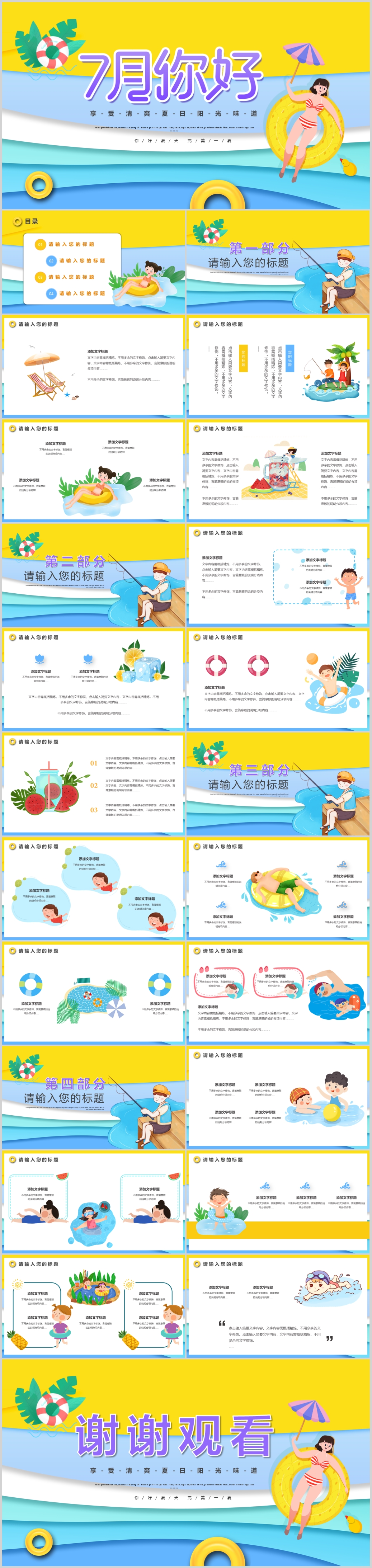 夏日小清新七月你好工作总结汇报ppt模板