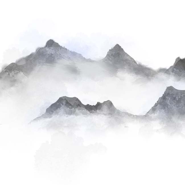> 中国风云雾水墨山水PNG元素PPT素材插画