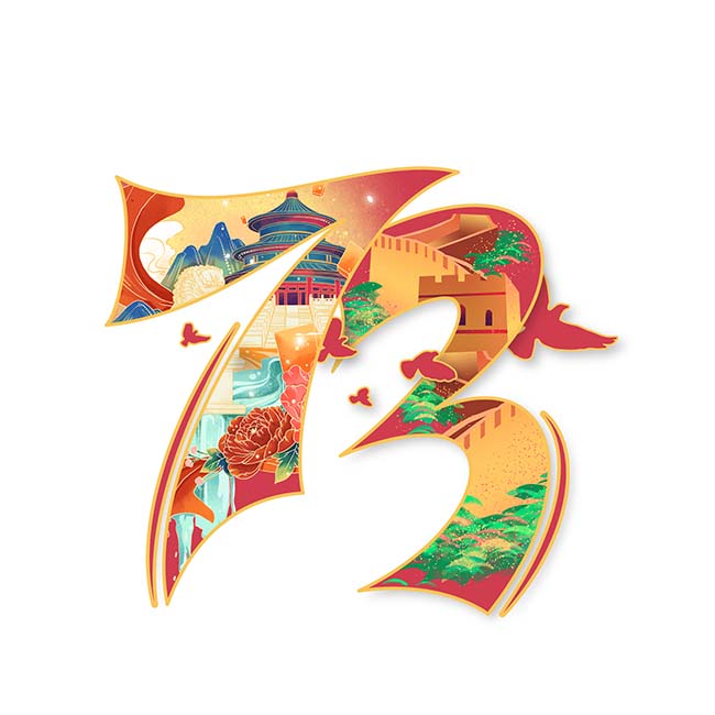 > 国庆73周年国潮建筑长城组合艺术字PNG元素设计PPT素材