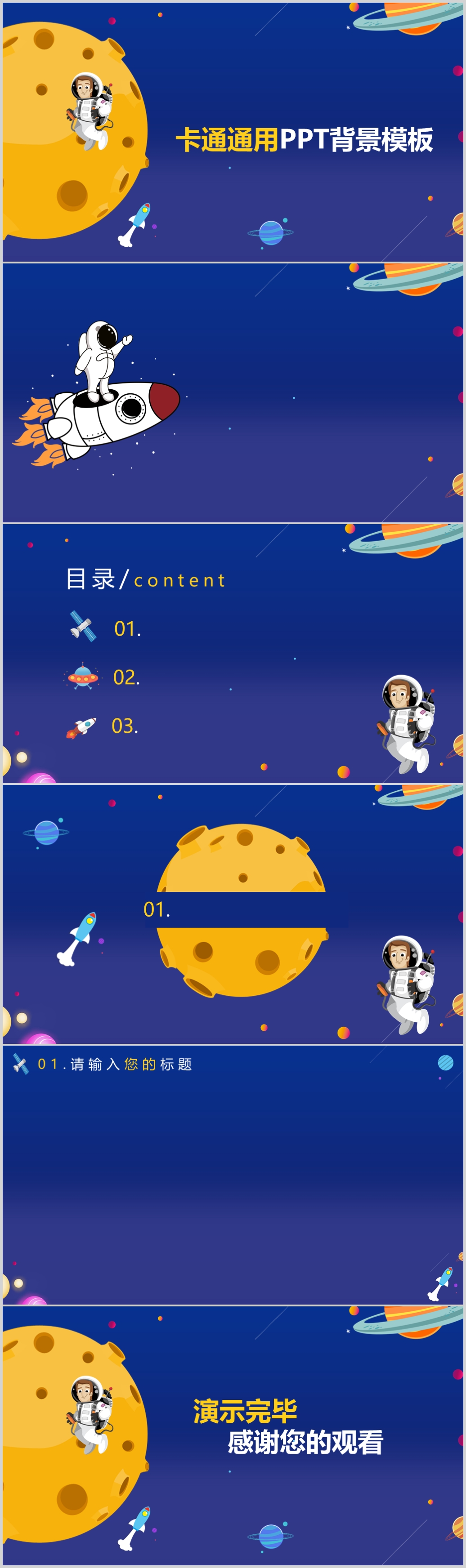 蓝色卡通登月嫦娥五号月球探测PPT封面背景