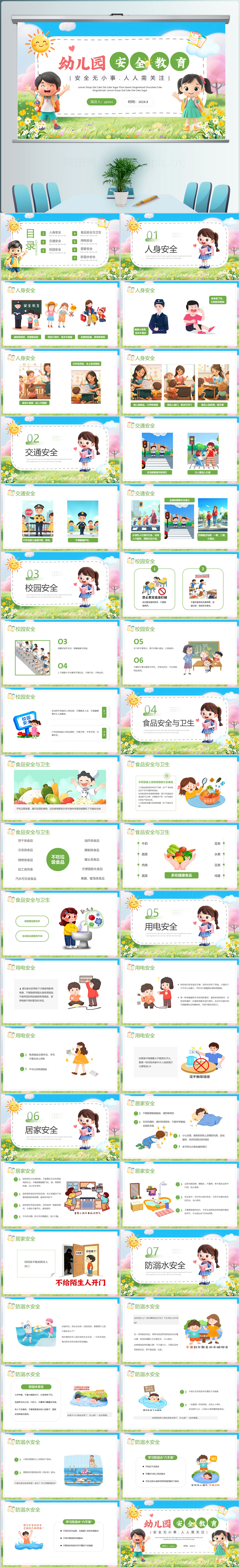 卡通幼儿园安全无小事安全教育主题班会ppt模板