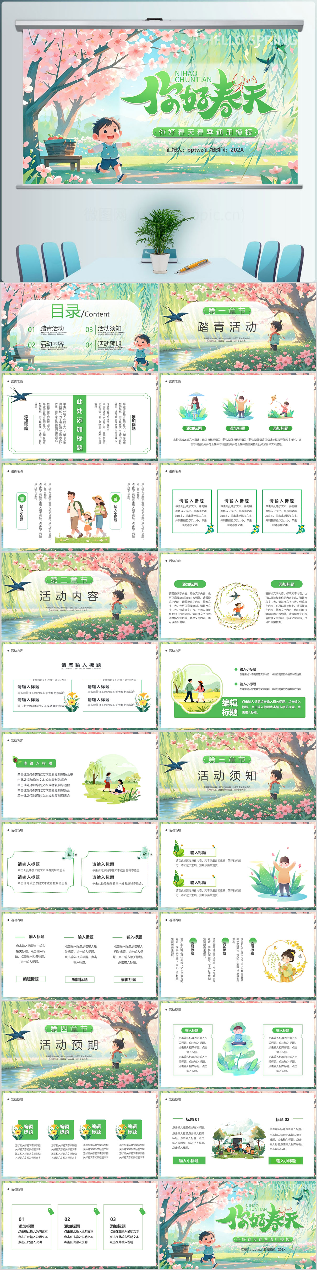 2026绿色清新你好春天踏青主题活动介绍ppt模板